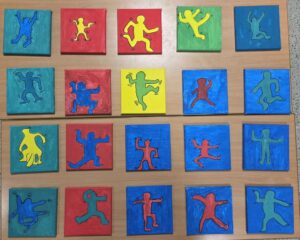 29.1.26 Bereits von den Weihnachtsferien beschäftigten sich die Schülerinnen und Schüler der Klasse 4a mit dem Leben und den Werken von Keith Haring. Inspiriert von seinem Stil gestalteten die Kinder eigene Figuren und setzten diese kreativ auf Leinwand um. Die farbenfrohen Werke zeigen viel Bewegung, Fantasie und Freude am Gestalten.